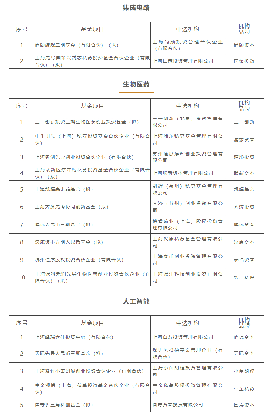 上海三大先导产业母基金公示第二批子基金遴选结果 17只子基金入选...